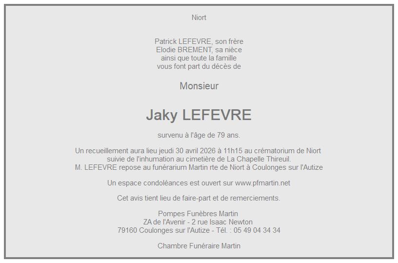 Crématorium de Niort le jeudi 30 avril à 11 heures 15